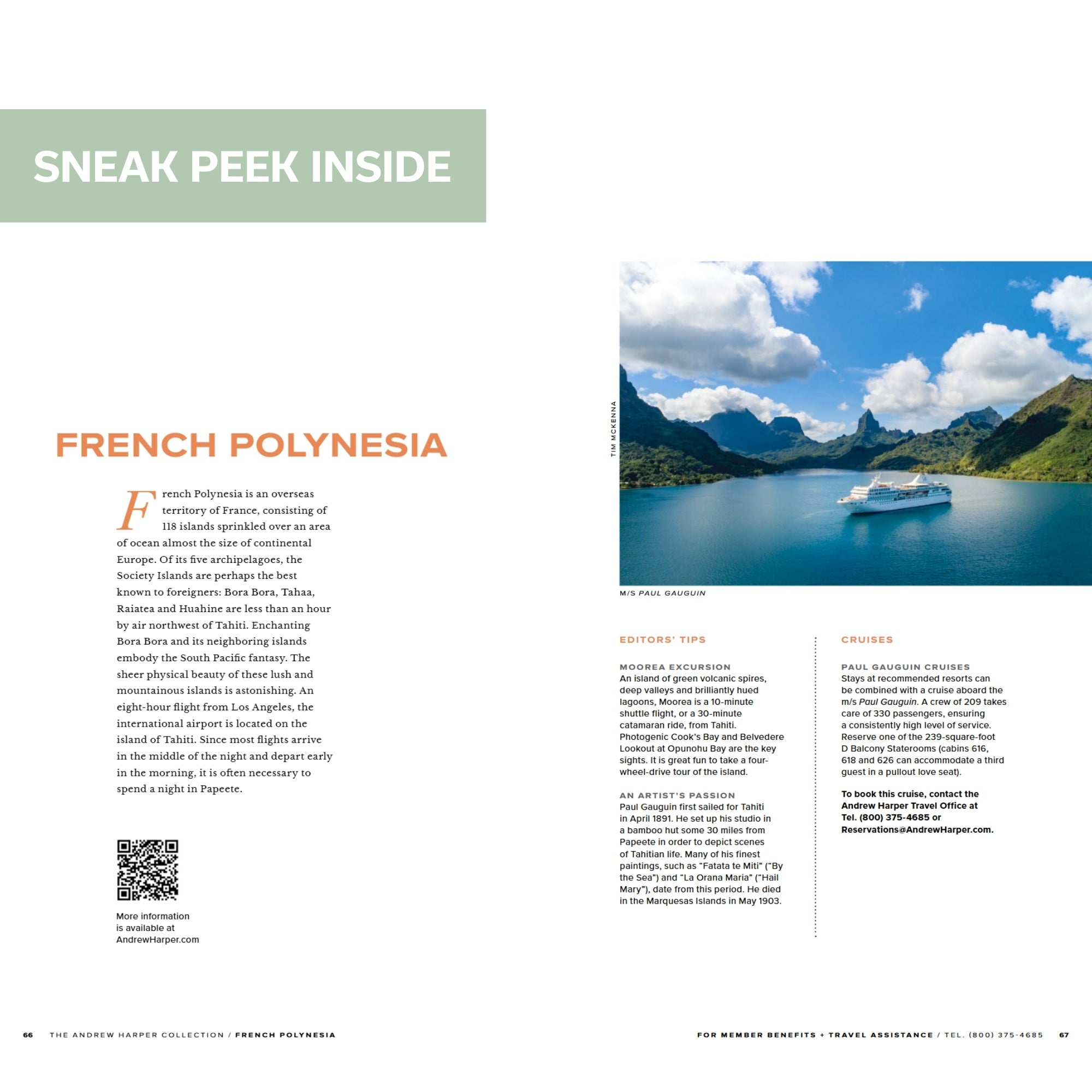 Discover the world’s finest hideaways, hotels and resorts with the Andrew Harper Collection. Each year, our anonymous traveling editors meticulously research, review, and curate the best in luxury travel. These individual volumes feature hundreds of photos, maps, comprehensive destination information, restaurant suggestions spanning the globe and insider tips about everything from favorite wineries and distilleries to memorable snorkeling and hiking spots.