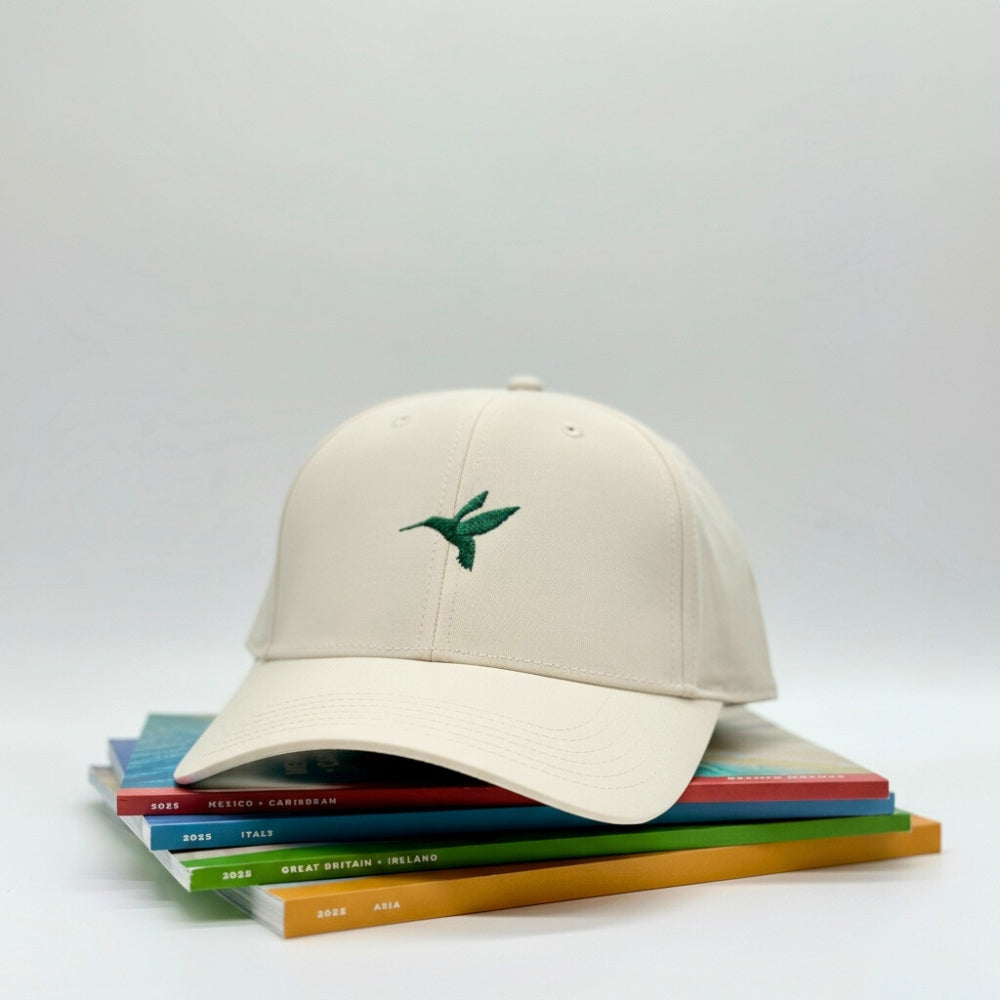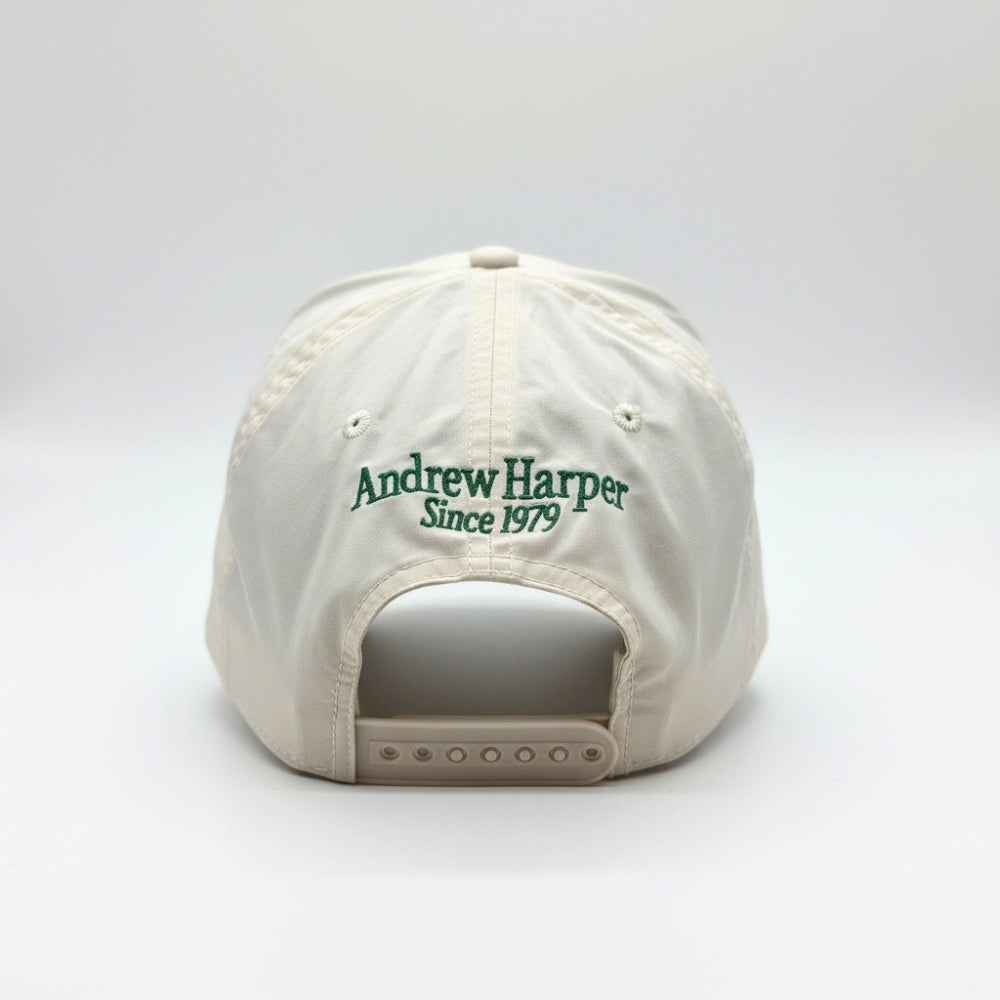 A green embroidered hummingbird nods to Andrew Harper’s heritage of discovery, and the back features a clean “Andrew Harper Since 1979.” With UPF 50+ protection, breathable eyelets and a classic snapback closure, it’s built for hikers, golfers and explorers who elevate every journey.